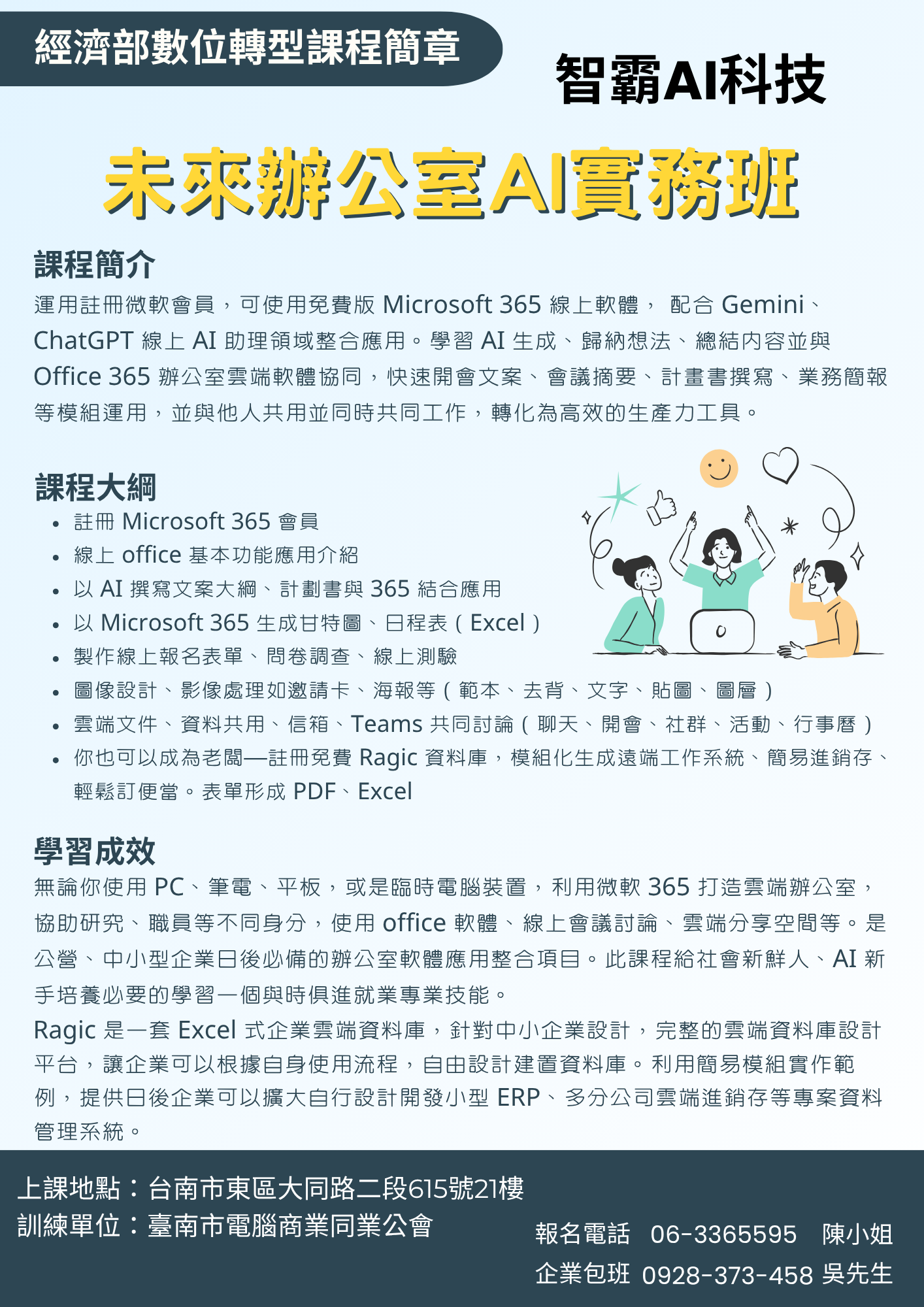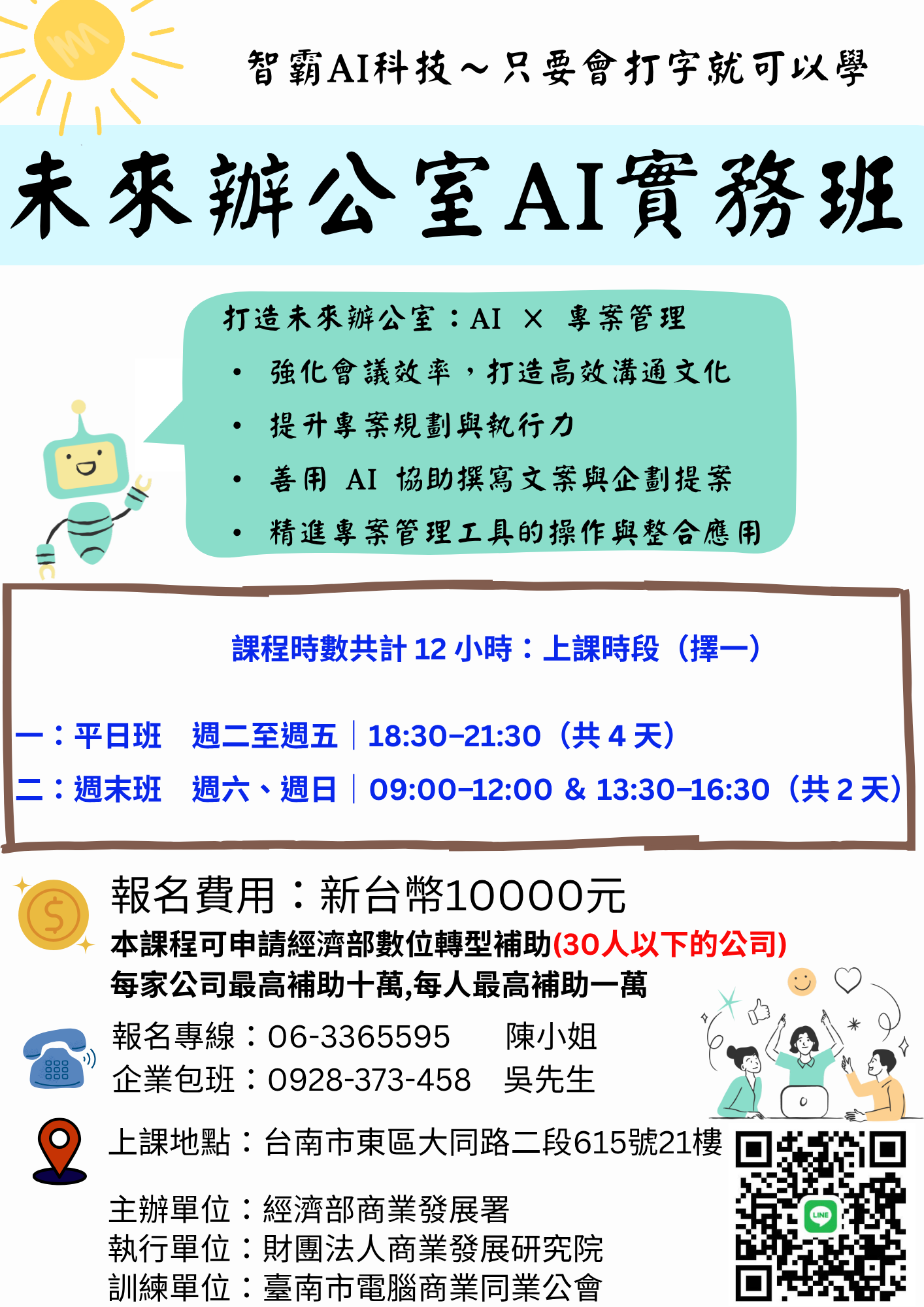 【 未來辦公室AI實務班】企業數位轉型補助!即日起開放報名
