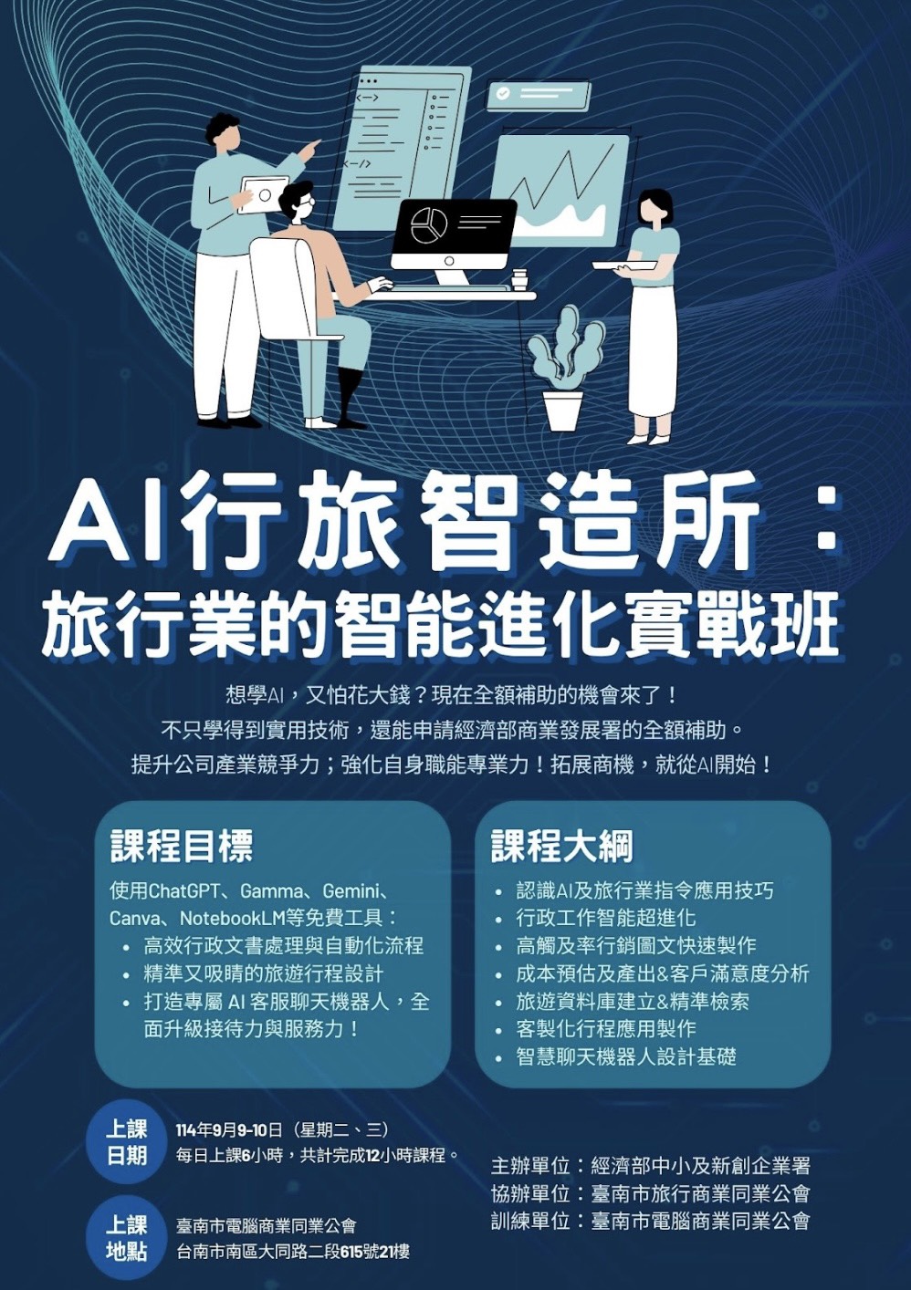 【AI行旅智造所:旅行業的智能進化實戰班】企業數位轉型補助!即日起開放報名