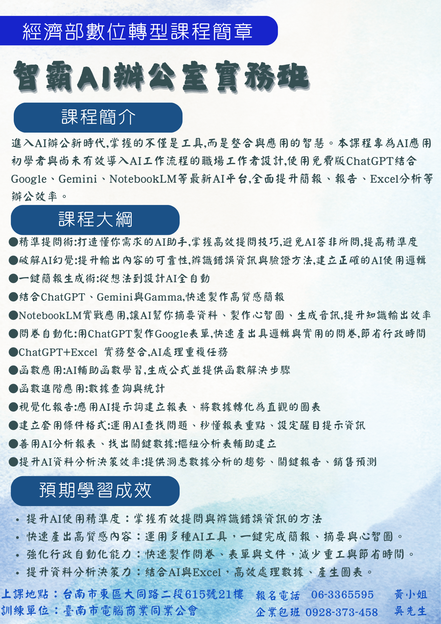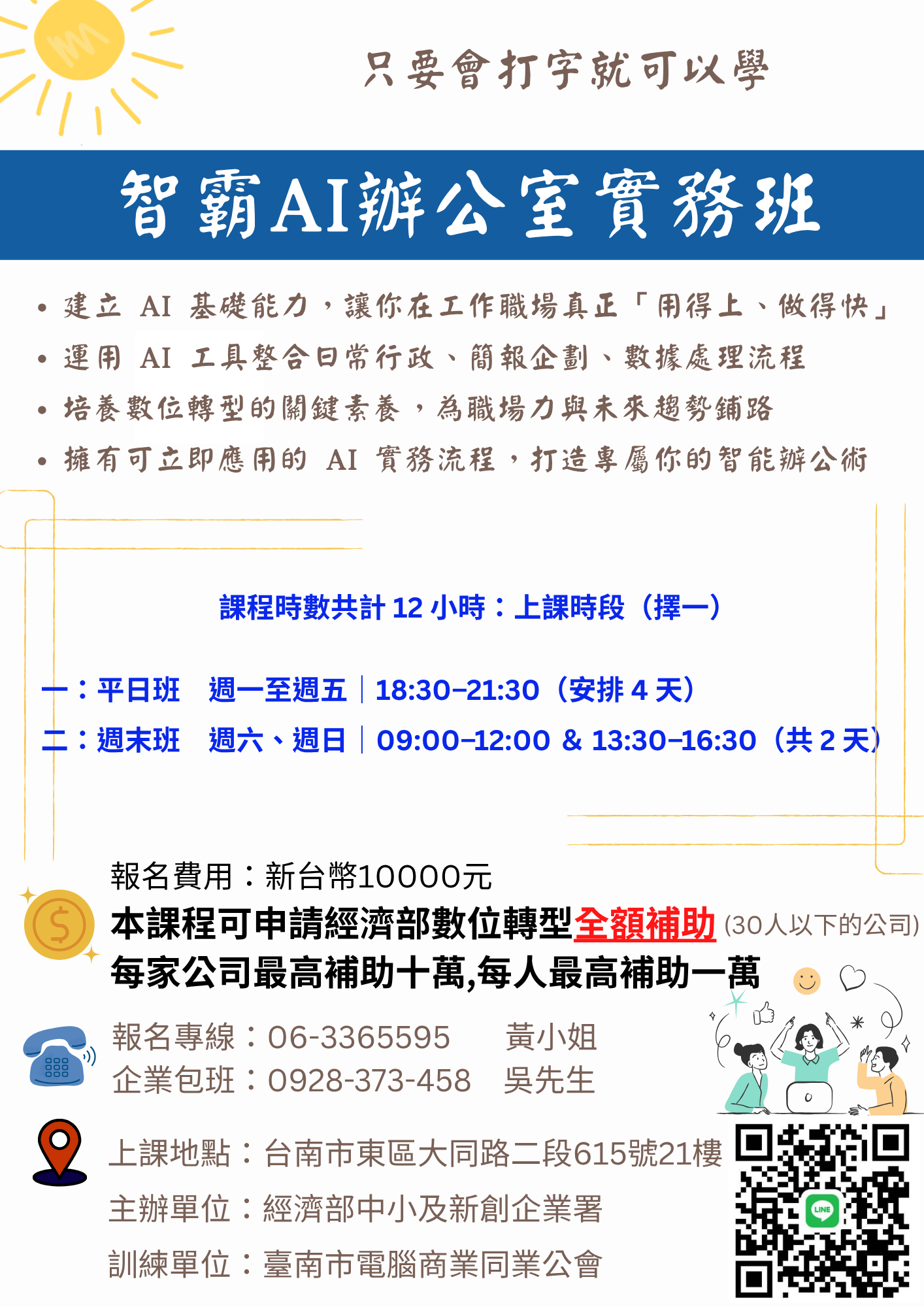 【課程費用】:$10000(每家企業最高補助十萬,每位員工最高補助一萬)