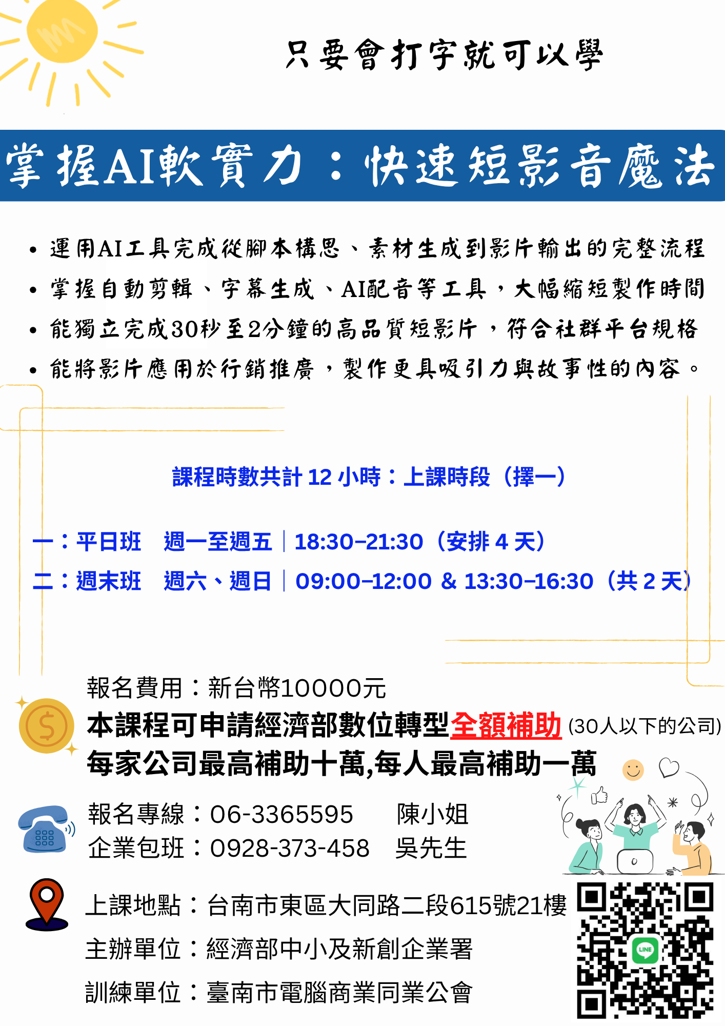 課程報名/諮詢:06-3365595    陳小姐